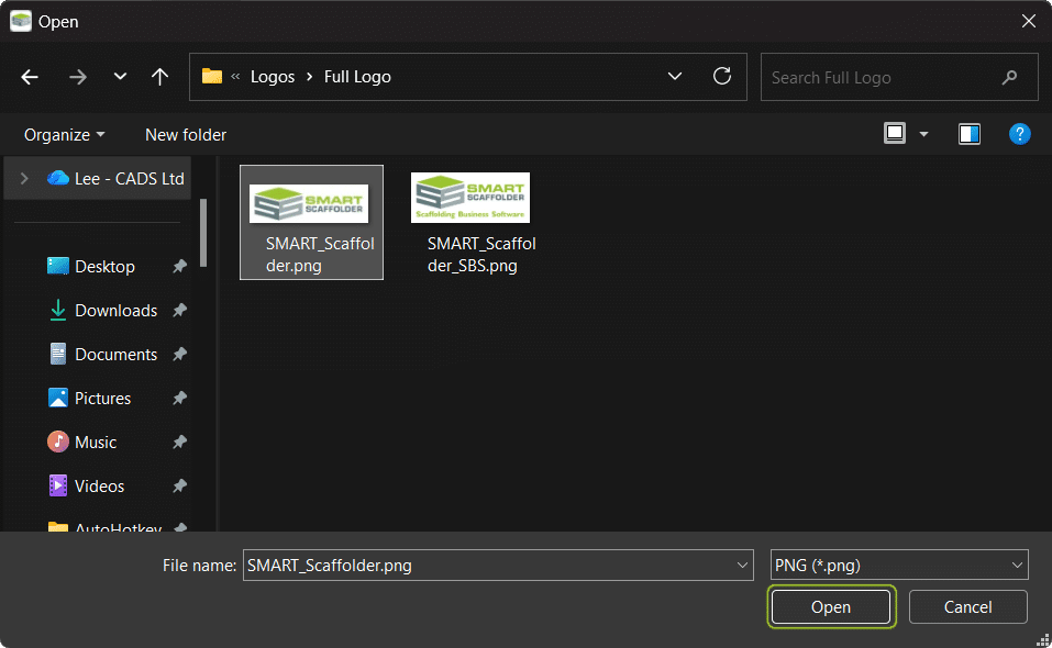 When you click on the logo, the file browser will open, simply locate the logo image file, select it and click Open. Your new logo will be automatically included in the report.