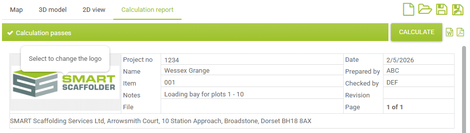 You can also set up your company logo and contact details by clicking the logo in a compliance report: