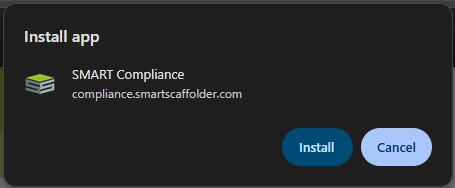 The option to install SMART Compliance is provided by browsers that allow this feature. When using a compatible browser, SMART Compliance also provides a button to install directly from its menu, making it easier to find.
