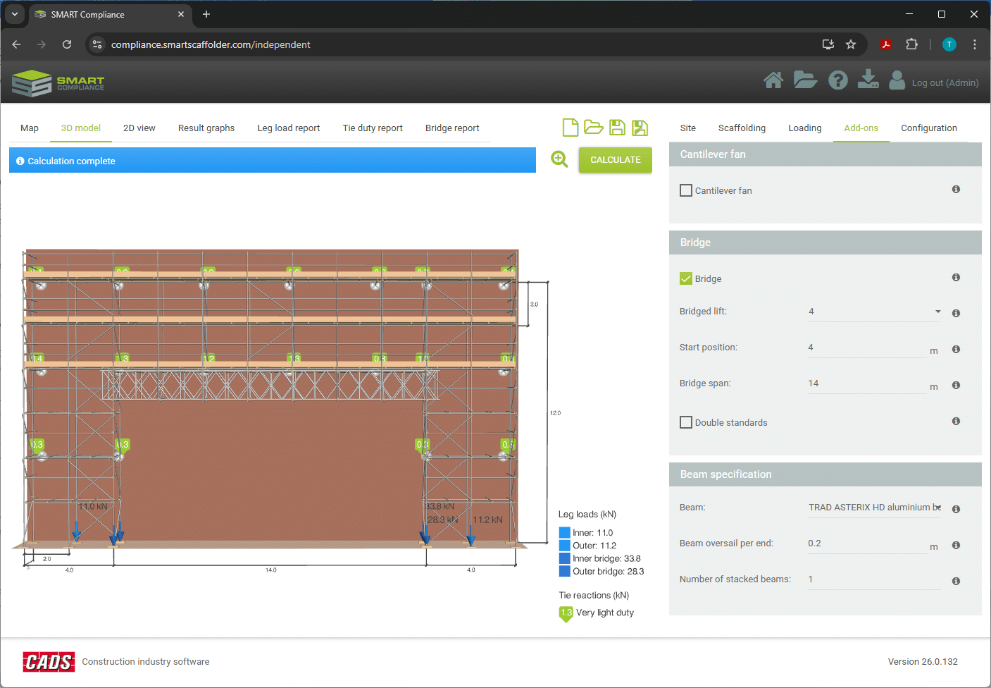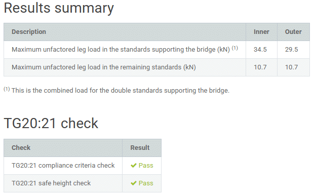 The Tied independent scaffolding module is intended to perform certain design calculations for tied independent façade access scaffolds of tube and fitting construction located in the UK or Ireland. The calculation reports show the results in a transparent manner complemented by additional drawings that can be used with or without accompanying TG20:21 compliance sheets. The following sections provide details of the user inputs required, and also explain the outputs provided by the software.
