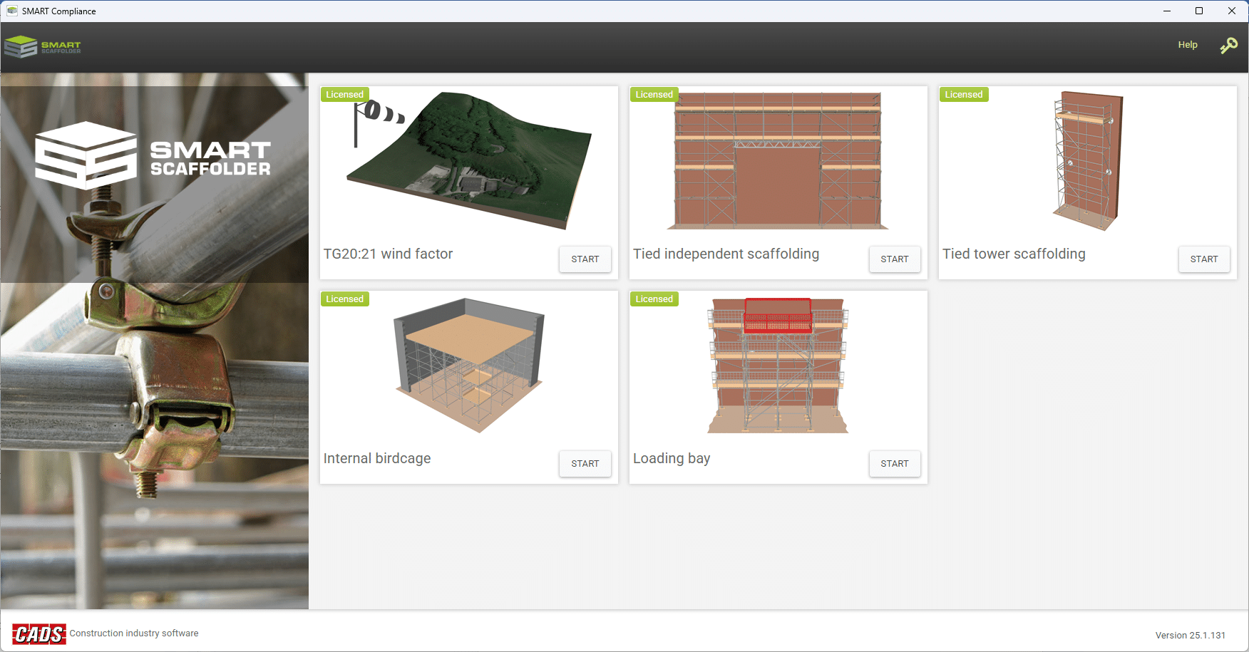 Once the software has launched, you are able to select, in the Home screen, one of the applications available.