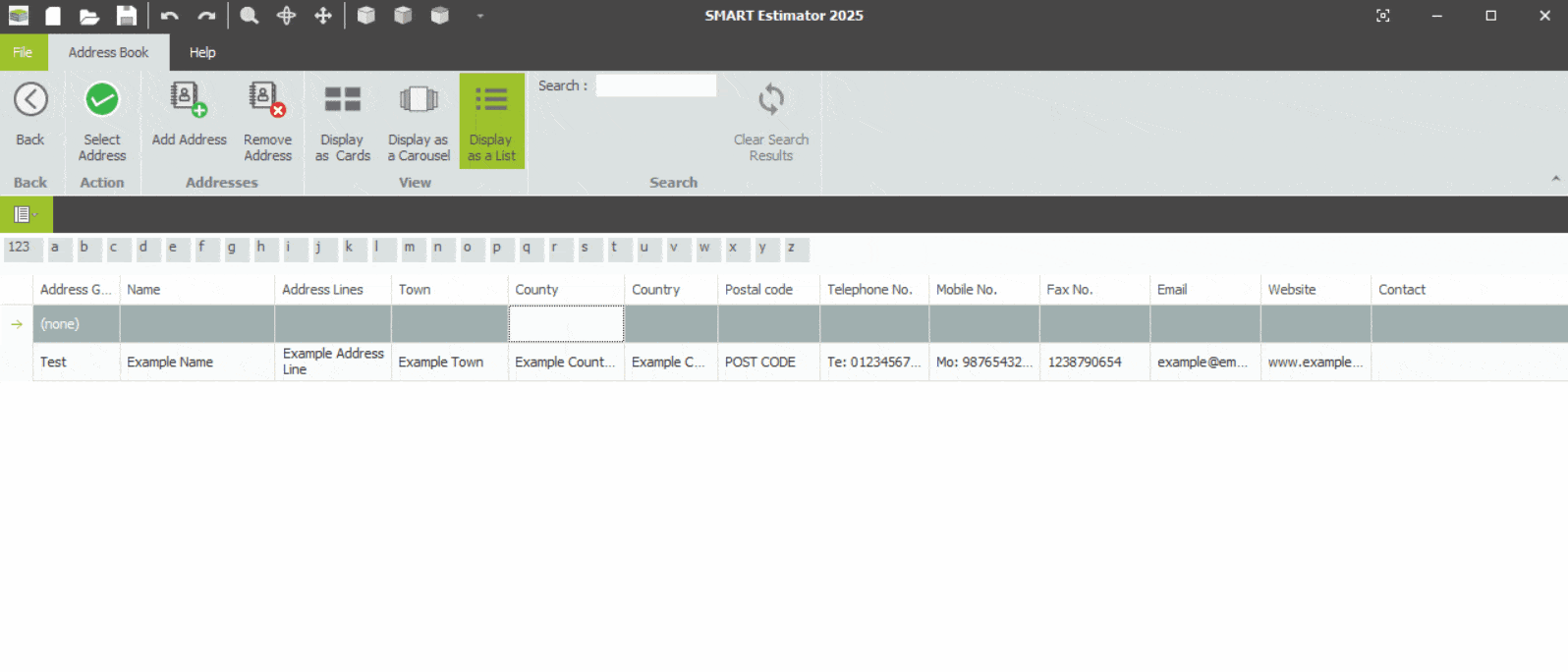 Firstly, locate the blank / filled address you want to edit, then click once inside the relevant cell (For example: Address Group, Name, Address Lines, Town, County, etc). The cell will become active, allowing you to type or modify the existing information. Now move on to the next field by pressing the Tab key. It’s recommended that you separate your address based on each cell, rather than putting it all in the Address Line, so that it works optimally with Quote IT. Once you updated the field, it’s automatically saved for that address.
