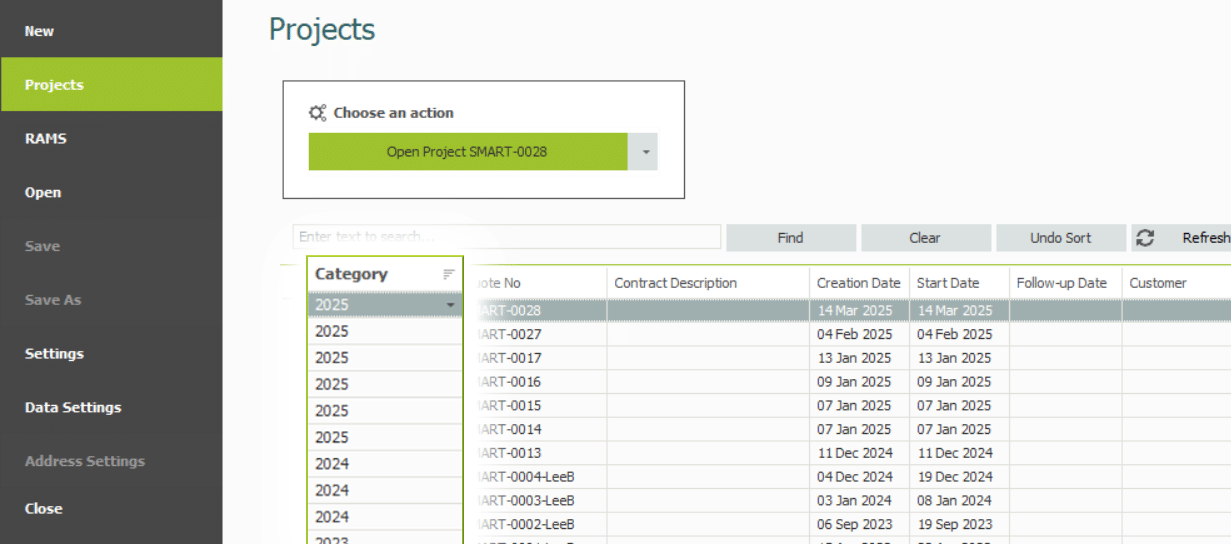 From the SMART Estimator Home Page, click on the Projects Tab to access the Enterprise Server. On the left-hand side of the Enterprise Server, you’ll see a Category column.