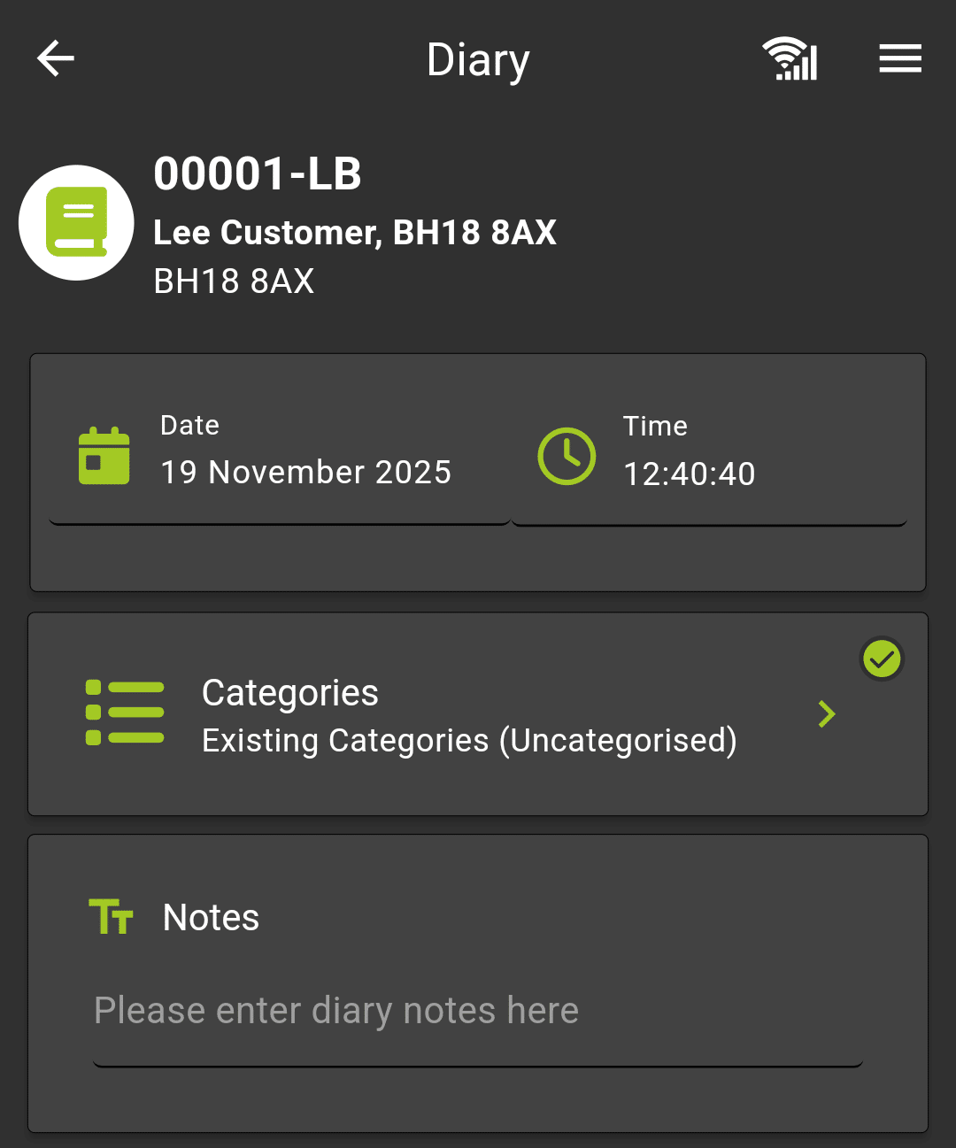 The diary entry will now be logged against the individual scaffold and the Site on SMART Manager.