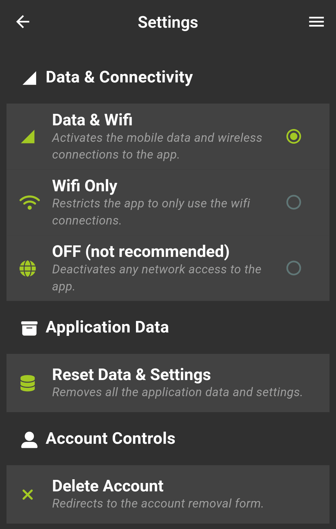 You can also log out or access the App Settings and choose your Internet connection preferences.