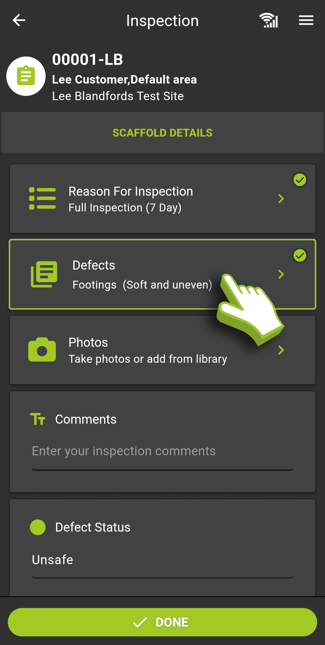 During the course of completing your inspection you can return to a defect and edit it at any time. Simply click on the defect button on the inspection screen.