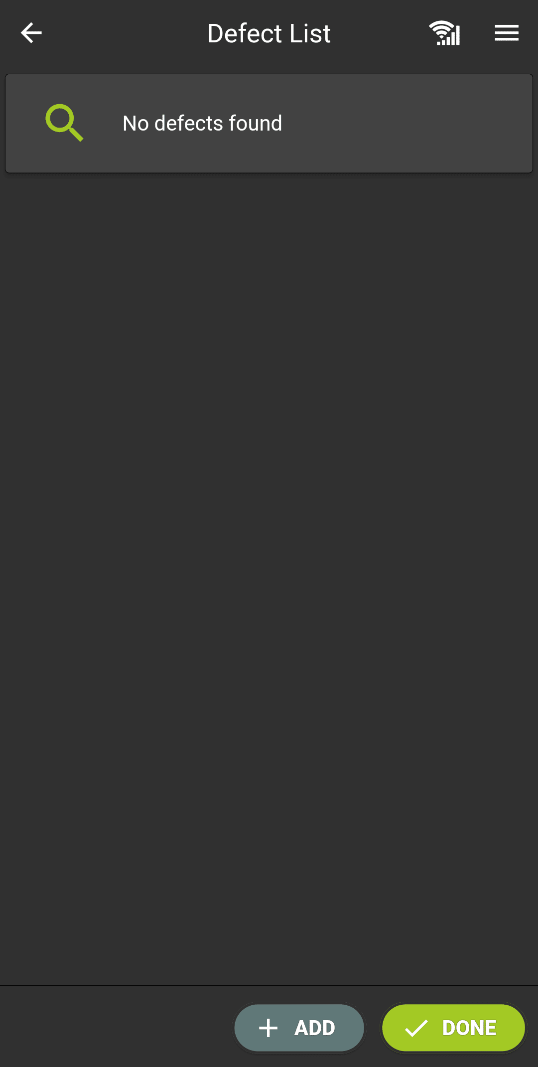 Once you have completed your defect, click done to save the defect. You can return and edit the defect later if needed. You can now add another defect by clicking “Add” or return to the inspection screen by clicking “Done”.