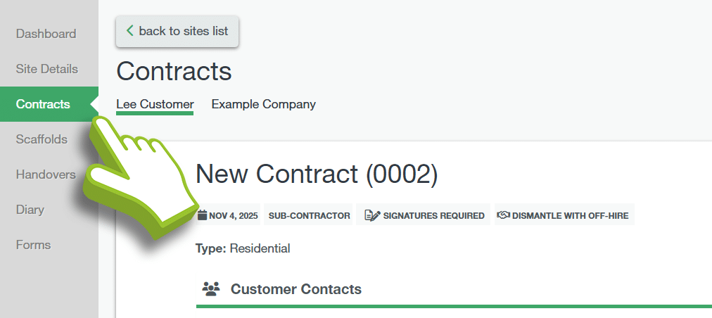 To close a contract, start by clicking on the Contracts tab located on the sidebar. From there, browse through and select the contract you wish to close.